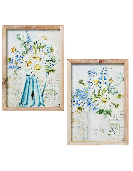 Set 2 cuadros lienzo jarrón flores 24x34cm
