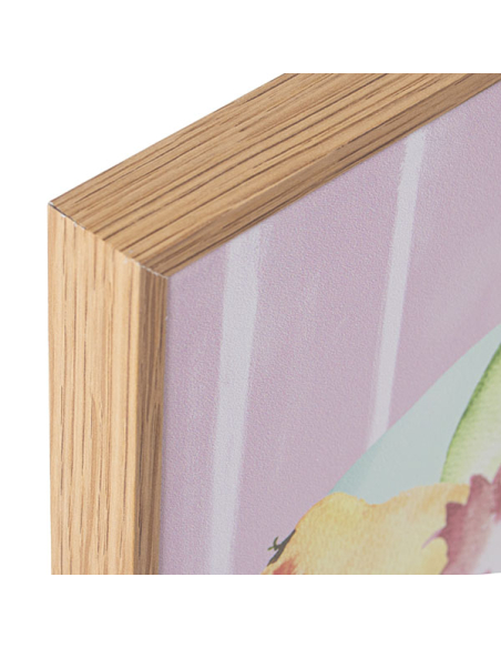 Set 2 cuadros lienzo frutas tropicales 30x30cm, los colores predominantes son el azul y el rosa, aunque se aprecia una gran variedad de tonos que aportan riqueza visual. Los cuadros presentan frutas tropicales dispuestas en bowls y platos sobre mesas con manteles, creando una escena vibrante y atractiva. Con marcos de madera que complementan el diseño, estos cuadros están listos para colgar y añadir un toque exótico y colorido a cualquier espacio de tu hogar, haciendo que las paredes cobren vida con un tema tropical.