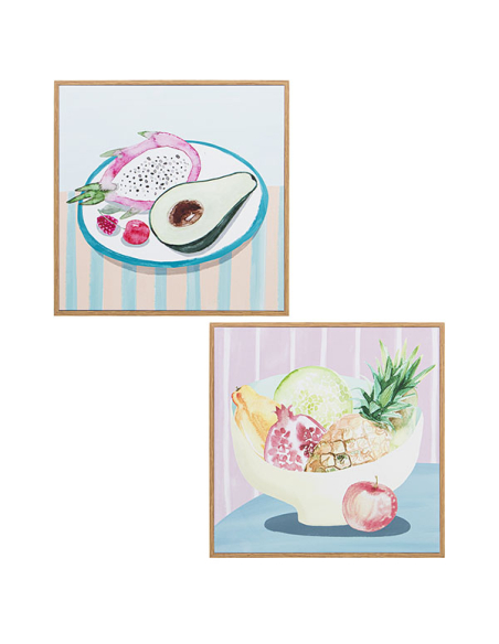 Set 2 cuadros lienzo frutas tropicales 30x30cm
