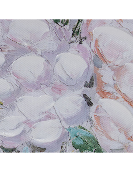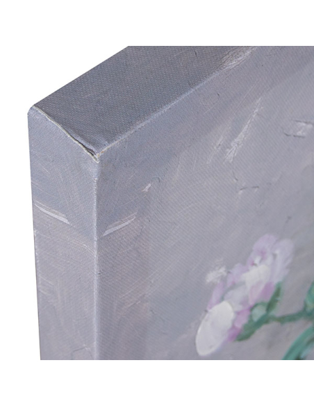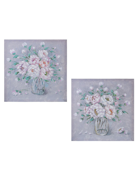 Set 2 cuadros lienzo florero 60x60 cm, los colores predominantes son el verde, gris y rosa, creando una paleta suave y armoniosa. Cada cuadro presenta un arreglo floral dentro de un jarrón, con flores detalladas y ramas que se extienden, dando una sensación de frescura y vida. Con el 40% de la obra pintada a mano, se garantiza un nivel de detalle y artesanía que hará que estas piezas destaquen en cualquier pared. Listos para colgar, son perfectos para decorar salones, comedores o incluso dormitorios, añadiendo un acento floral y elegante a tu hogar.