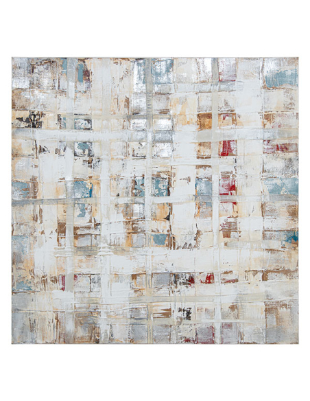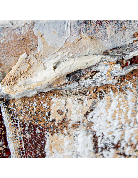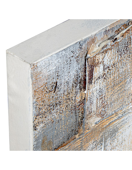 Cuadro lienzo 120x120 cm abstracto, este intrigante cuadro en formato cuadrado presenta una base de lienzo diseñada con figuras irregulares y un efecto de pintura derramada combinado con círculos desgastados. Detalles en relieve añaden profundidad y textura, creando una obra visualmente impactante. La estructura de madera y el marco de madera en color natural proporcionan estabilidad y un acabado elegante. Equipado con un gancho metálico, el cuadro es fácil de colgar y asegura una instalación rápida y segura. Perfecto para añadir un toque de modernidad y arte abstracto a cualquier espacio, este cuadro se convierte en una pieza central que enriquece la decoración de tu hogar con su diseño único y sofisticado.