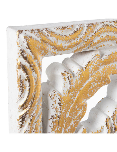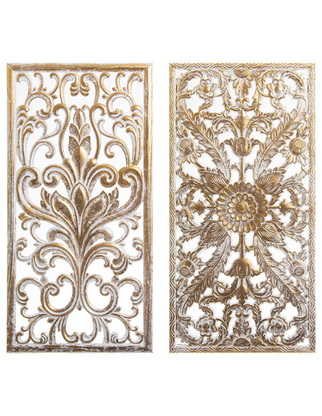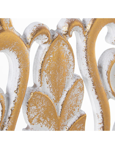 Set 2 retablos rectangulares calados dorado, los detalles intrincados en colores blanco y dorado crean una pieza decorativa impresionante que combina bien con diversos estilos de decoración. Listos para colgar, estos retablos son ideales para embellecer salones, comedores o entradas, aportando un acento de lujo y distinción a cualquier espacio.