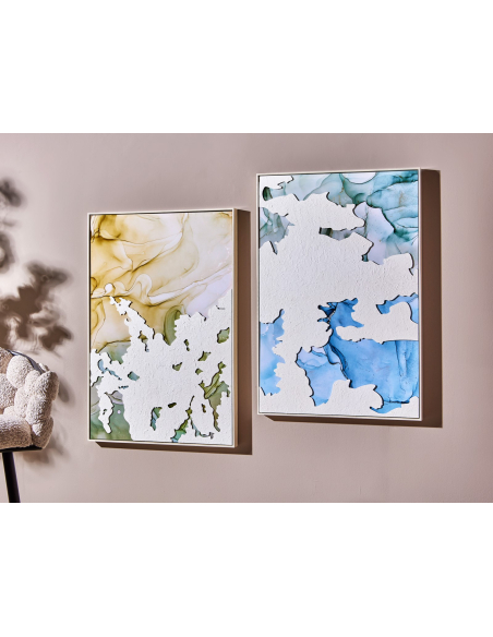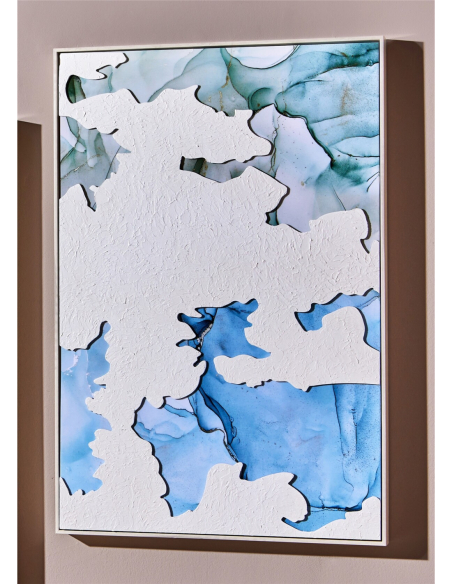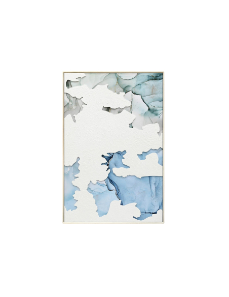 Óleo abstracto alto brillo azulado marco 62 x 92 cm, con su acabado de alto brillo, presenta una composición dinámica de tonos blancos y azules, que evocan la serenidad del cielo y la profundidad del océano. El relieve superpuesto, aplicado con maestría, añade una dimensión táctil y tridimensional a la obra, creando un juego de luces y sombras que cambia según el ángulo de visión. El marco, con un diseño sencillo y elegante, complementa a la perfección la estética del cuadro, sin restarle protagonismo. Este óleo es perfecto para añadir un toque de sofisticación y modernidad a cualquier espacio, ya sea en el salón, el dormitorio o incluso una oficina.