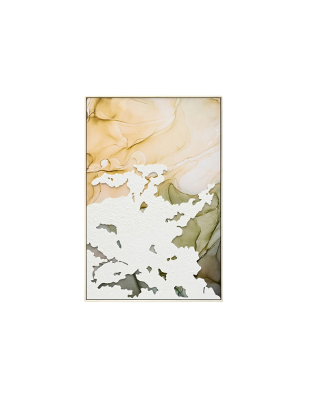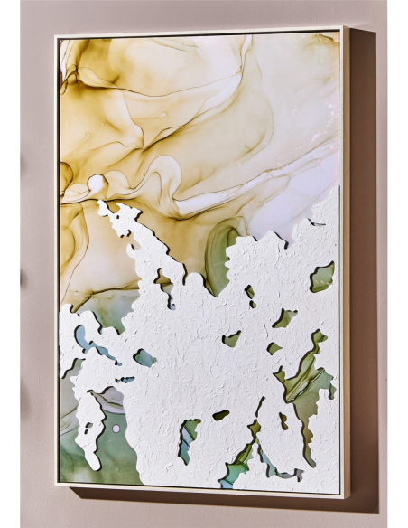 Óleo abstracto alto brillo verdoso marco 62 x 92 cm, con su acabado de alto brillo, presenta una composición dinámica de tonos blancos y verdes, que evocan la frescura de la naturaleza y la serenidad de un paisaje acuático. El relieve superpuesto, aplicado con maestría, añade una dimensión táctil y tridimensional a la obra, creando un juego de luces y sombras que cambia según el ángulo de visión y la iluminación del espacio. El marco, con un diseño sencillo y elegante, complementa a la perfección la estética del cuadro, sin restarle protagonismo. Este óleo es perfecto para añadir un toque de sofisticación y modernidad a cualquier ambiente.