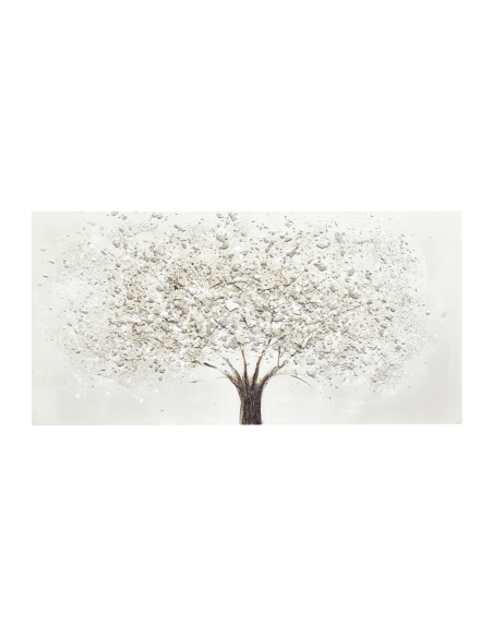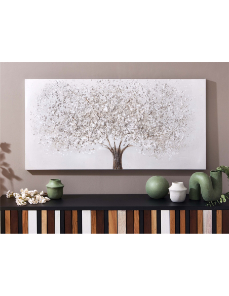 Óleo árbol texturas 120x60 cm, la obra destaca por su impactante relieve granular, que invita a tocar la superficie y sentir la corteza rugosa bajo los dedos. Cada pincelada, cargada de materia, construye una imagen tridimensional que casi parece brotar del lienzo. Los tonos, sutilmente combinados, crean una atmósfera de serenidad y misterio, como si contemplamos el árbol a través de una suave neblina matinal. Este cuadro no es solo una representación, es una experiencia sensorial que te conecta con la fuerza y la belleza de la naturaleza. Su tamaño alargado lo hace perfecto para un pasillo, un salón o como cabecero de cama, transformando el espacio en una galería de arte personal.