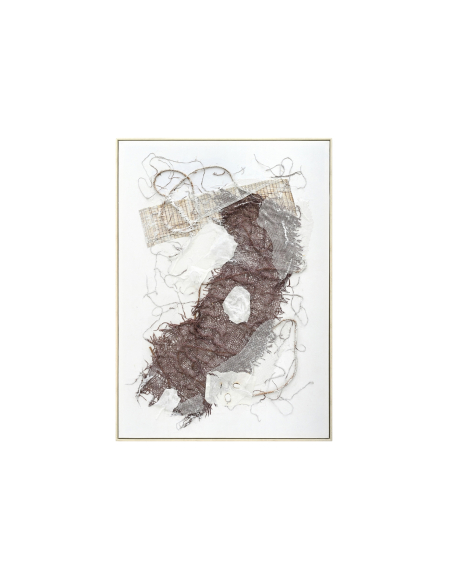 Cuadro moderno malla rojiza con marco 72x102 cm, una malla rojiza, con un relieve que invita al tacto, se extiende sobre el lienzo, creando un efecto visual tridimensional y dinámico. El marco, con un diseño sencillo y elegante, enmarca la obra sin restarle protagonismo, permitiendo que la fuerza expresiva del cuadro se expanda por todo el espacio. Esta pieza no es solo una decoración, es una conversación, una provocación, una invitación a explorar las profundidades del arte abstracto.