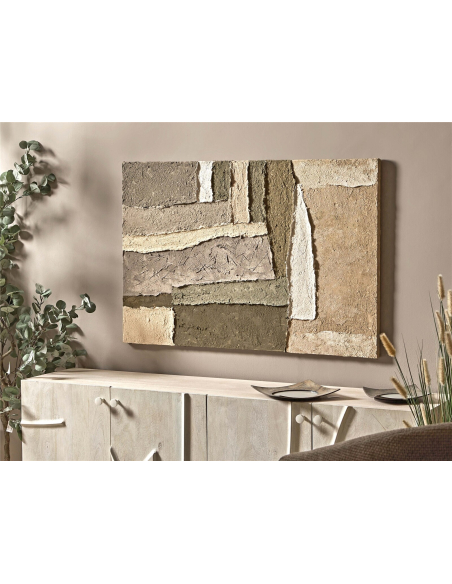 Cuadro abstracto capas papel verde 80x120 cm, se convierte en una pieza escultórica que atrae todas las miradas. El marco, con su acabado natural, aporta calidez y un toque rústico, mientras que la forma irregular del espejo crea un efecto visual sorprendente y divertido. Perfecto para colocar en el recibidor, el dormitorio, el vestidor o incluso el salón, este espejo no solo cumple su función práctica, sino que también se convierte en un elemento decorativo que añade personalidad y estilo a cualquier espacio.