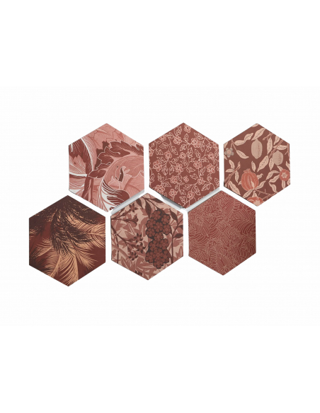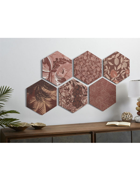 Composición decoración pared madera hexágono hojas teja