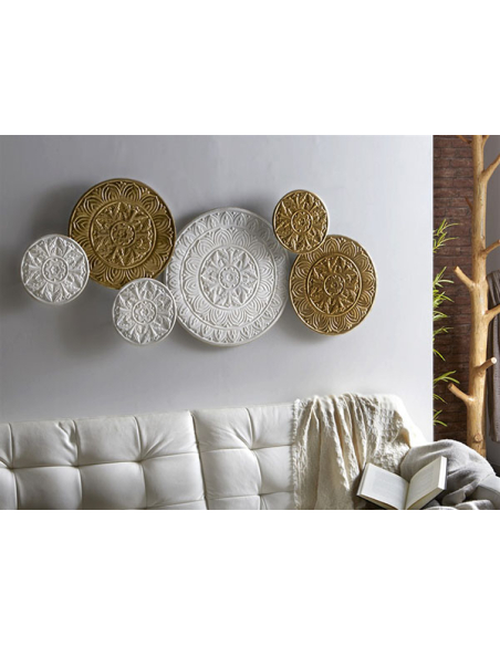 Panel metal mandalas blanco y oro