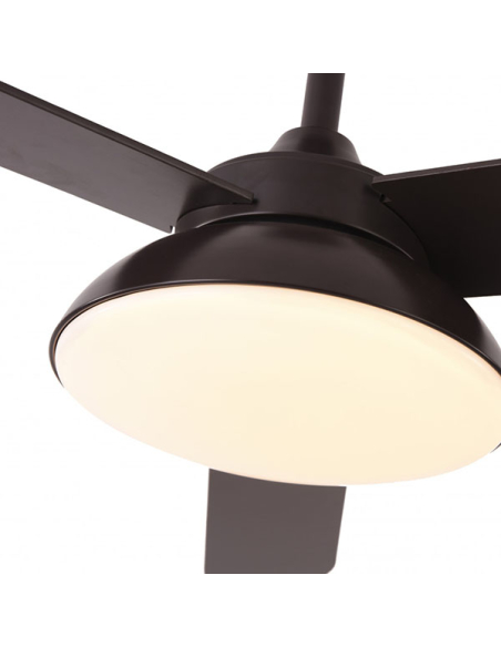 Ventilador DC serie MARRON de color GRIS con 3 aspas REVERSIBLES color MARRON/HAYA. Realizado de metal, MDF y policarbonato. Tiene una medida de 35,6/47x132x132 centímetros. Tecnología LED integrada con una potencia de 24W, con 3 TEMPERATURAS SELECCIONABLES DE LUZ (3000-4000-6000K) y 2950 lúmenes. Contiene control remoto con 6 velocidades diferentes, memoria de color, modo de verano/invierno y temporizador de 1 hasta 8 horas. Incluye dos tijas de 12,5 y 25 centímetros. Modelo también disponible en color Blanco-Blanco/Haya y Blanco-Blanco/Haya.