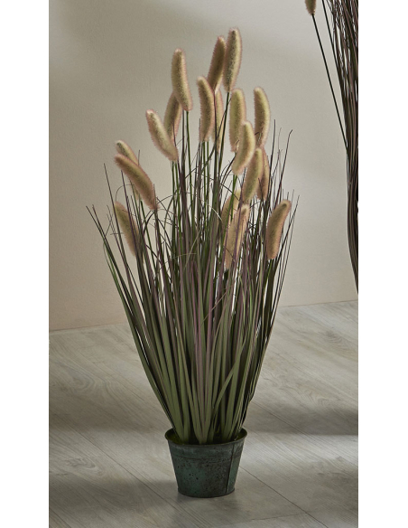 Hierba artificial Cola de zorro tonos rojizos 80 cm acompañada por una pequeña maceta metálica en colores al tono. Agrega estilo sin compromisos con esta planta artificial que combina a la perfección con cualquier decoración. Su diseño cuidadosamente elaborado proporciona una apariencia natural que eleva la estética de tu hogar u oficina.