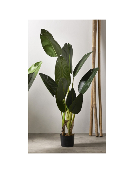 Árbol artificial del viajero 156 cm. Esta planta viene acompañada por una maceta cilíndrica color negro. Esta planta artificial no solo aporta un toque de verdor, sino que también ofrece resistencia y durabilidad. Su estructura bien diseñada garantiza que mantenga su belleza a lo largo del tiempo, sin importar las condiciones ambientales. El árbol del viajero le da un estilo exótico y tropical a cualquier estación de tu hogar u oficina.