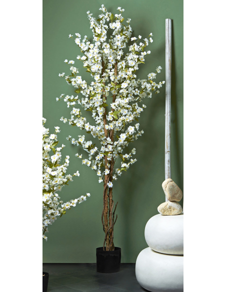 Árbol artificial Cerezo flor blanca 210 cm. Esta planta viene acompañada de una maceta cilíndrica en color negro. Agrega un toque de encanto botánico a tu hogar con esta planta artificial de duración eterna. Su belleza perdurable transformará tu espacio sin preocupaciones por el tiempo o las estaciones. Este árbol de cerezo artificial aporta calidez a cualquier espacio. El tronco y las ramas están entrelazados en perfecta armonía mostrando un efecto natural. El árbol de cerezo artificial se encuentra disponible en diferentes alturas y colores.