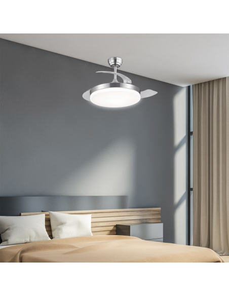 Ventilador Mini Malta Níquel 40 cm 3 palas, con un diámetro de 40 cm, es perfecto para espacios pequeños como oficinas, dormitorios o áreas de trabajo. Su acabado níquel le proporciona un aspecto moderno y elegante que se adapta perfectamente a cualquier estilo de decoración. Equipado con tres palas bien diseñadas, este ventilador asegura una ventilación uniforme y eficiente del aire, manteniendo el espacio fresco y cómodo incluso en los días más calurosos. Con controles intuitivos y un diseño ergonómico, este ventilador es muy fácil de instalar y manejar. Se puede ajustar la velocidad y la dirección del aire según las necesidades.