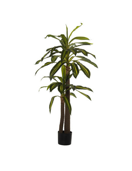 Planta artificial árbol del Brasil, posee dos troncos texturados a dos alturas con hojas de efecto natural, lo que la convierte en una opción perfecta para agregar un toque de frescura y elegancia a cualquier espacio. La maceta cilíndrica de color negro añade un toque moderno y sofisticado, ideal para uso tanto en interiores como en exteriores. Esta planta artificial ofrece la belleza de la naturaleza sin la necesidad de mantenimiento, permitiéndote disfrutar de su presencia sin preocupaciones.