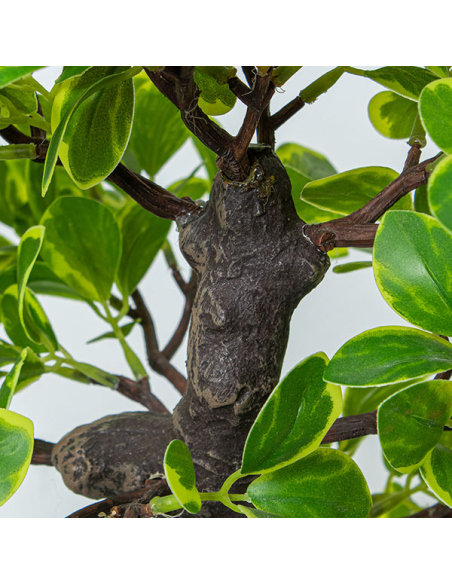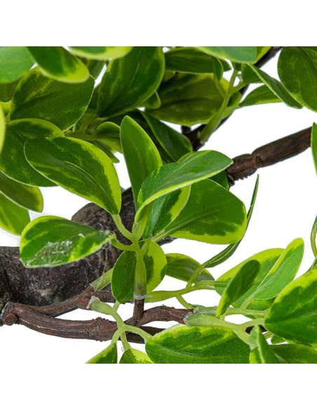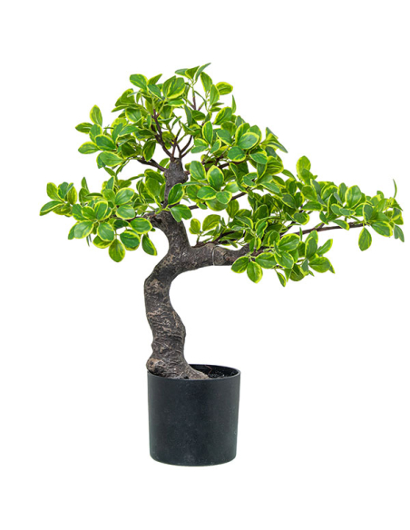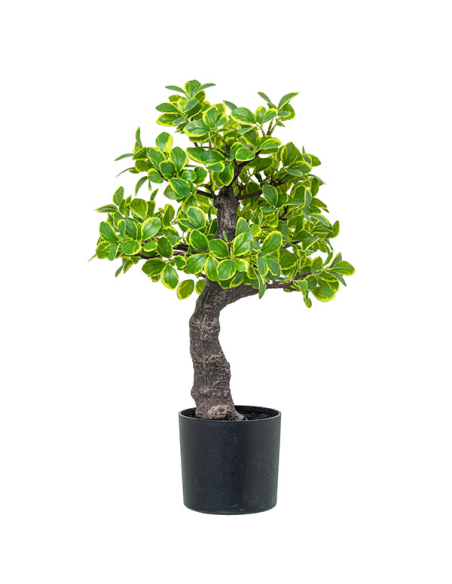 Planta artificial euonymus 45cm, es una opción encantadora para añadir un toque de naturaleza a cualquier espacio. Sus hojas grandes tienen un brillo natural y están vetadas en blanco y verde, con nervaduras claramente visibles que aportan realismo. Esta planta viene en una maceta cilíndrica de color negro, que complementa su apariencia elegante y moderna. Ideal para decorar interiores, proporcionando frescura y vitalidad sin necesidad de mantenimiento.