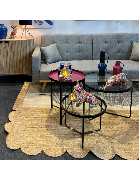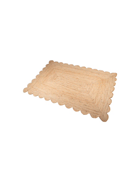 Alfombra yute 170 cm borde dentado, su diseño presenta un borde con semicírculos que forman una disposición ondulada alrededor de todo el contorno, proporcionando un detalle decorativo distintivo. Con un diseño sobrio y fácilmente combinable, esta alfombra es perfecta para cualquier espacio, desde salones hasta dormitorios, añadiendo calidez y estilo de manera sutil y sofisticada. Disponible en diferentes tamaños para adaptarse a tus necesidades de decoración.