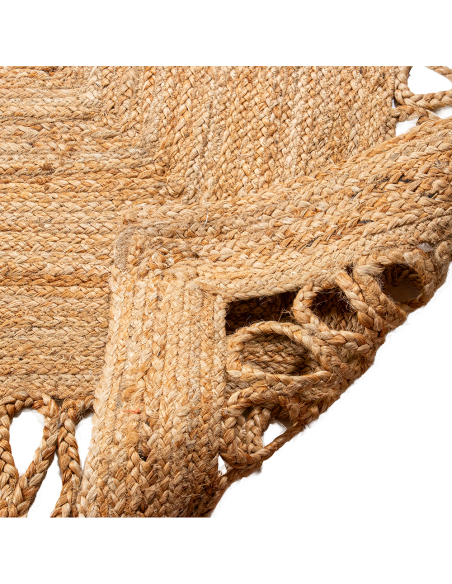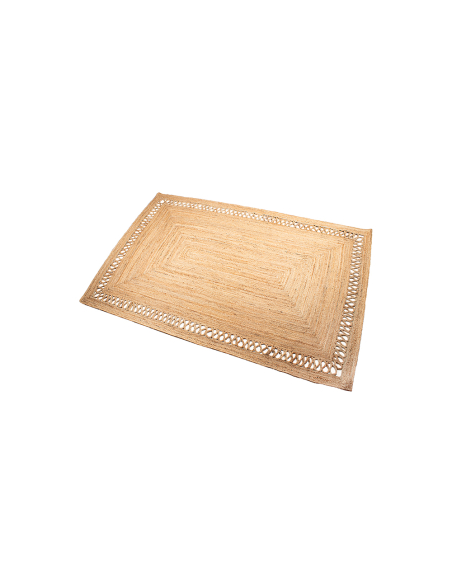 Alfombra yute 170 cm rectangular calado, su diseño rectangular presenta un tejido calado que añade textura y sofisticación, mientras que el contorno interno con diseño ondulado proporciona un detalle decorativo sutil y elegante. Con un contorno externo liso que destaca su estructura, esta alfombra es perfecta para cualquier ambiente, desde salones hasta dormitorios, ofreciendo estilo y funcionalidad en cada detalle. Disponible en varias medidas para adaptarse a tu espacio con facilidad.