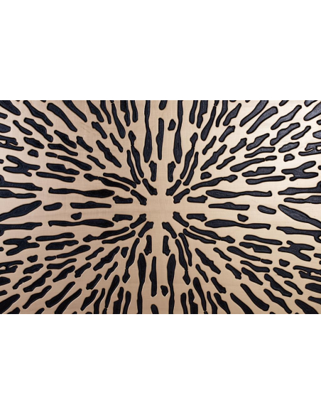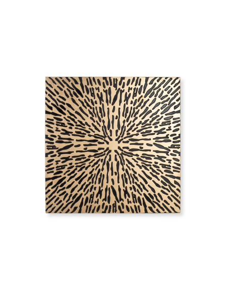 Panel decorativo Splash dorado, pieza mural de fuerte impacto visual: sobre un fondo dorado satinado se despliega un motivo “splash” negro de trazos radiales que genera sensación de movimiento y profundidad. Perfecto para vestir la pared sobre el sofá, en el comedor o como cabecera contemporánea. Su formato cuadrado permite instalarlo solo o en composición, aportando brillo, contraste y un gesto artístico a espacios modernos, eclécticos o industriales.