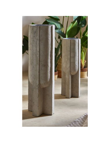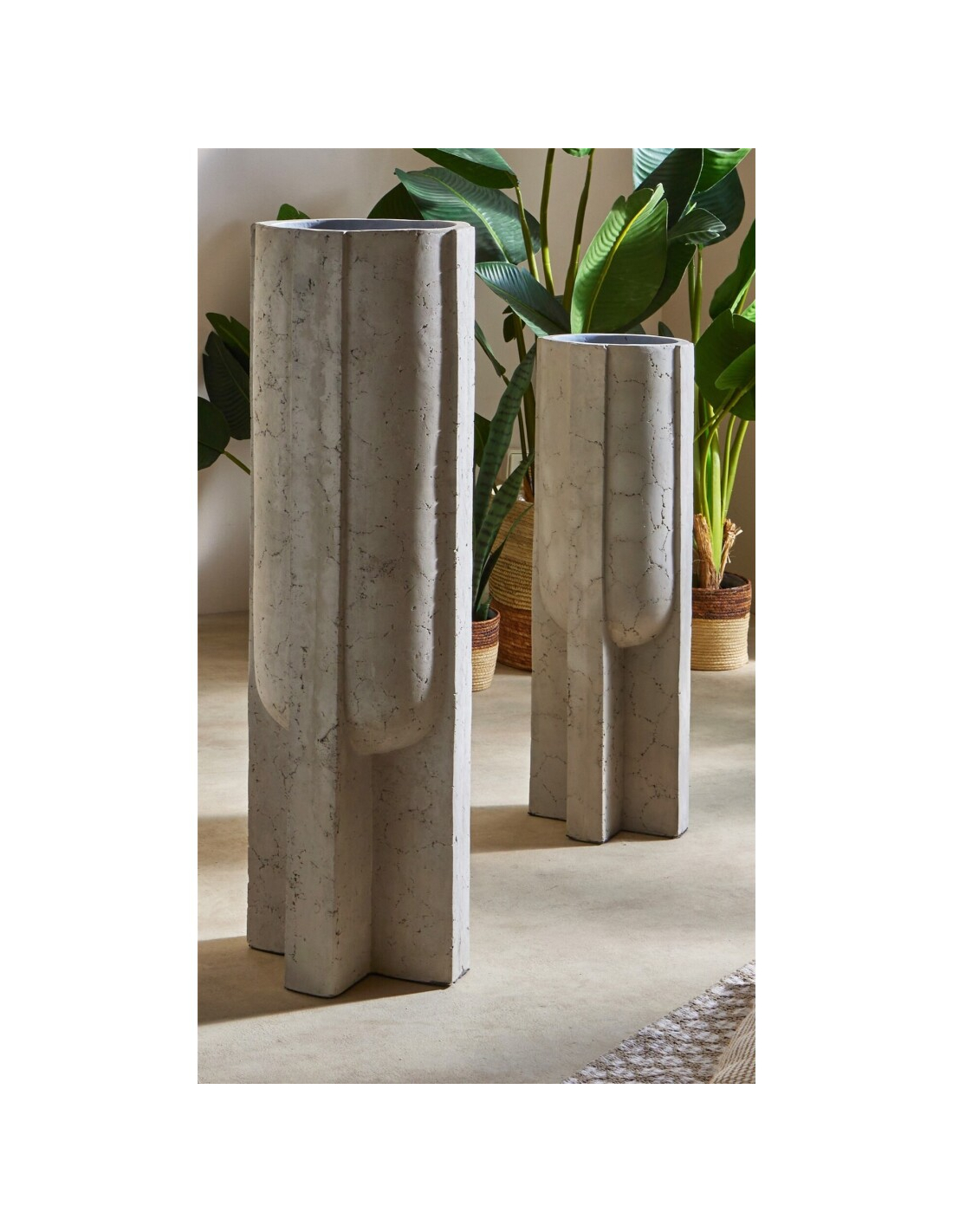 Set 2 jarrones símil piedra base cruz gris 101 cm