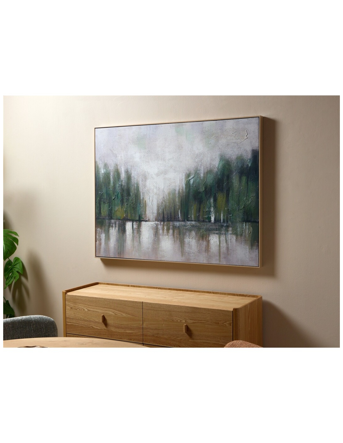 Lienzo impreso Río verde con marco, lienzo sobre bastidor de pino con colgadores horizontales que representa un paisaje natural con tonos verdes y pinceladas frescas. Su estilo abstracto transmite tranquilidad y armonía, convirtiéndolo en una pieza perfecta para aportar frescura a espacios modernos o clásicos. Ideal para colgar sobre sofás, cabeceros o muebles de almacenaje, se convierte en un foco visual atractivo y elegante.