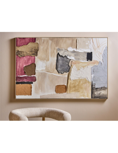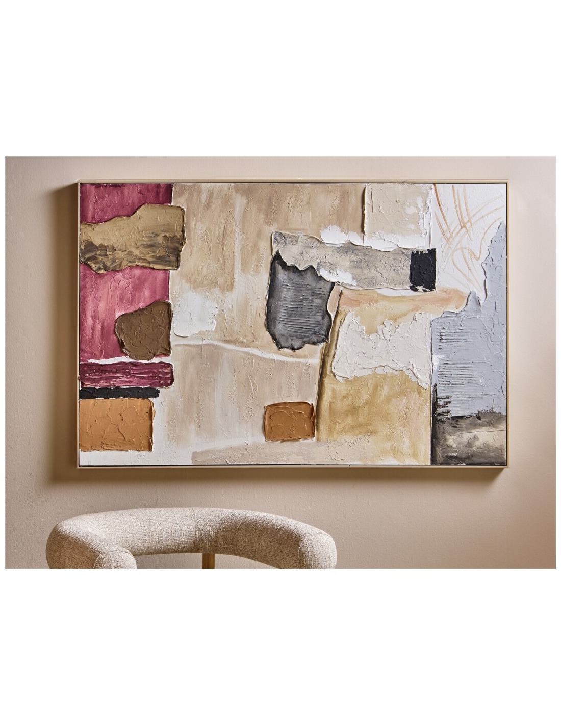 Lienzo abstracto multi con marco 150x100 cm, lienzo con bastidor de pino y colgadores horizontales que mezcla una amplia gama de tonalidades en un diseño abstracto moderno. Su gran formato lo convierte en una pieza central que realza y transforma cualquier ambiente, aportando dinamismo y personalidad. Perfecto para quienes buscan un toque artístico y contemporáneo, se adapta a salones, oficinas o espacios amplios con gran versatilidad decorativa.