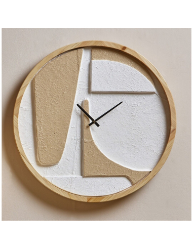 Reloj de pared esfera motivos abstractos 60d cm, una versión más compacta que mantiene el mismo diseño artístico y contemporáneo de su versión mayor. Elaborado en madera y metal, su acabado en relieve aporta textura y sofisticación. Con un diámetro de 60 cm, es perfecto para espacios medianos como dormitorios, cocinas modernas o despachos. Funciona con una pila AA, siendo una pieza decorativa funcional y práctica que combina la utilidad de un reloj con la estética de una obra de arte.