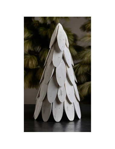 Abeto Navidad Lascas madera 43 cm, un detalle decorativo elaborado en madera de paulownia que transmite naturalidad y calidez. Su diseño con lascas superpuestas aporta textura y originalidad, convirtiéndolo en un complemento ideal para estanterías, mesas auxiliares o consolas. Compacto y versátil, es perfecto para añadir un aire navideño elegante en espacios pequeños. Una pieza que destaca por su sencillez y estilo natural.