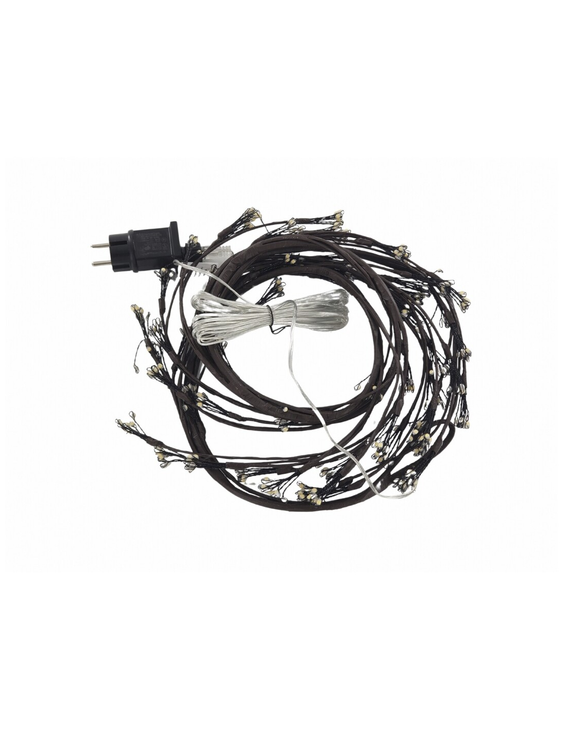 Rama marrón luces led 1,80 m (480 leds), un accesorio decorativo único que simula la forma de una rama natural cubierta con 480 luces LED cálidas. Con 1,80 metros de longitud, es perfecta para colocar en paredes, ventanales o integrar en decoraciones de grandes dimensiones. Su acabado marrón en metal y pvc le da un aspecto realista y elegante que combina fácilmente con distintos estilos. Funciona con cable de 3,5 metros que facilita su conexión. Diseñada para ambientes interiores o exteriores cubiertos, es resistente y segura. Una pieza ideal para crear atmósferas cálidas y originales durante la temporada navideña o en eventos especiales.