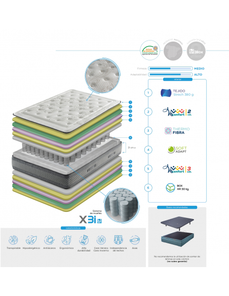 No se recomienda el uso de somier de láminas en este colchón (no cubre garantía).