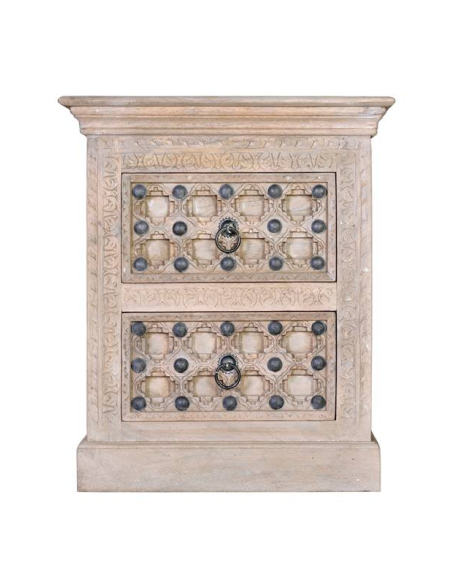 Mesita de noche Bakhra natural en madera de mango y detalles en hierro