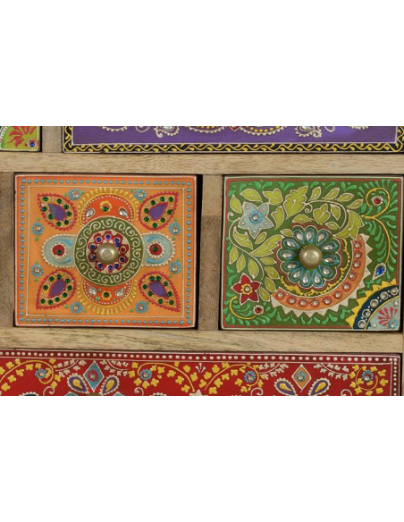 Mesita de noche 9 cajones en madera de mango y pintada a mano