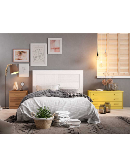 - Acabado grupo 3, cabecero en Decapé BB, mesita de noche en Nogal Castaño y módulo bajo Nature en Amarillo del grupo 4. Tirador Vega madera 4. *Especificar todos los tonos por orden.