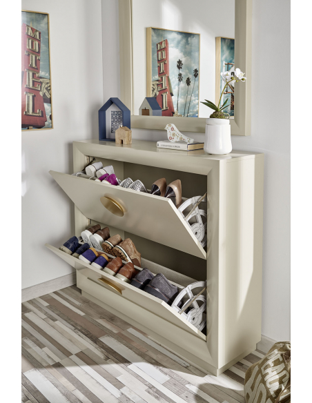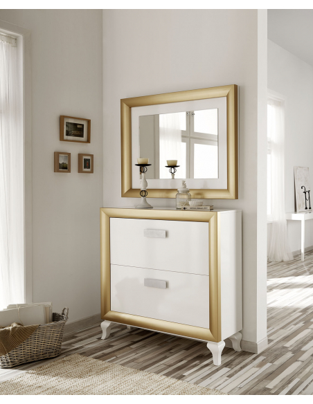 Zapatero dos puertas con marco personalizable para que tengas la pieza que más se adapte a tu hogar y tus necesidades. Se trata de una colección de madera terminada con los mejores materiales, de alta calidad y entre los que podrás elegir varios acabados. Y si necesitas cualquier otro acabado o medidas puedes contactar con nosotras para crear la pieza de tus sueños.