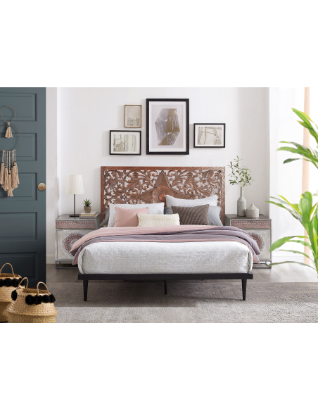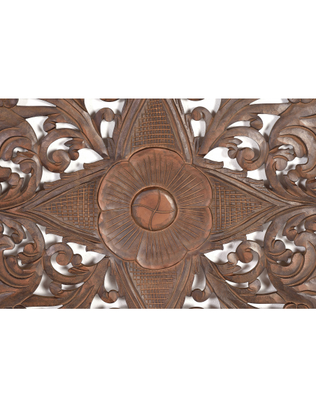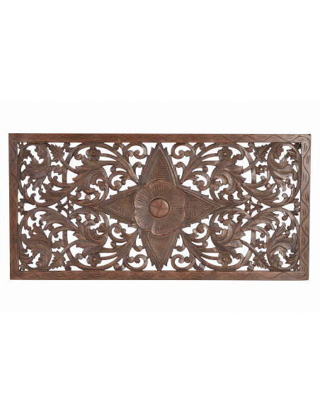 Cabecero madera natural tallado a mano. Cabecero de madera tallado a mano en madera de mango en color nogal. Se puede colgar en vertical u horizontal.