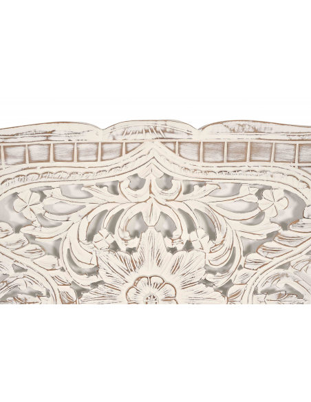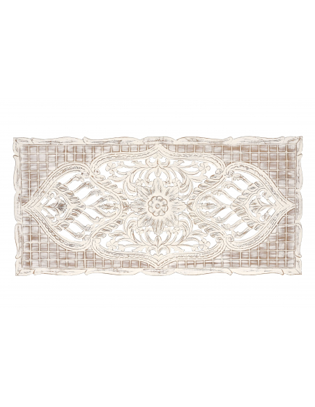 Cabecero madera blanqueada tallado a mano. Cabecero de madera tallado a mano en madera de mango en color blanco envejecido. Se puede colgar en vertical u horizontal.
