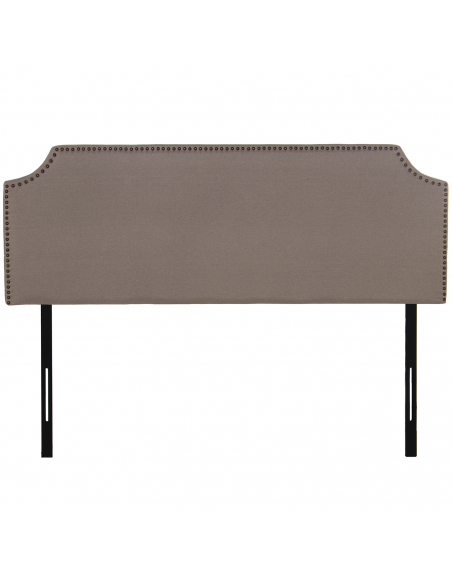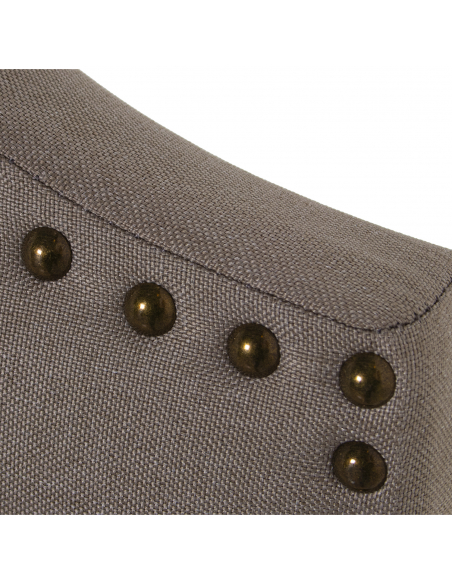 Cabecero de cama tapizado beige de altura regulable, cómodo y con detalles de tachuelas en su perímetro.