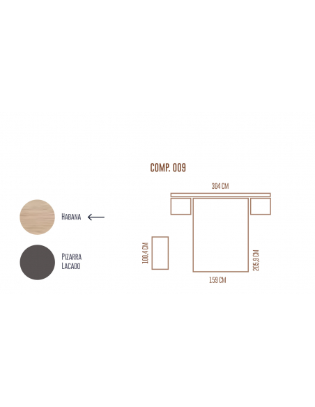 - Acabados en Habana, plafones cabecero lacados en Pizarra, tirador Pizarra.