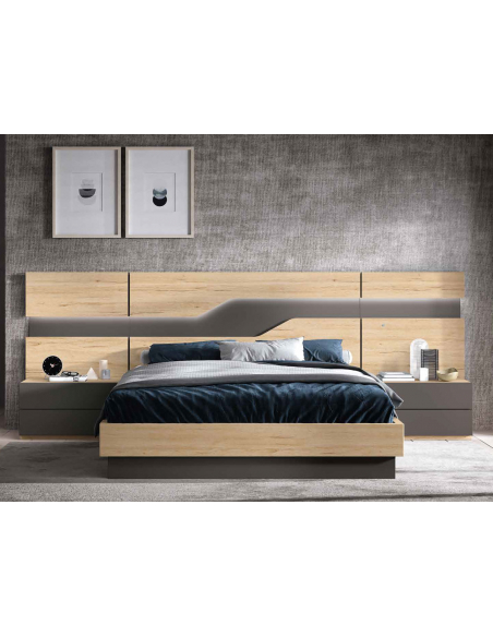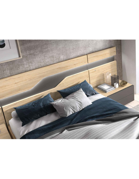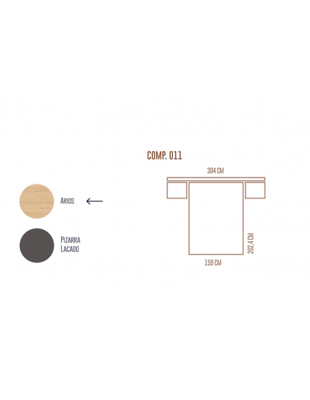 - Acabados en Arios, franja cabecero y frentes lacados en Pizarra.