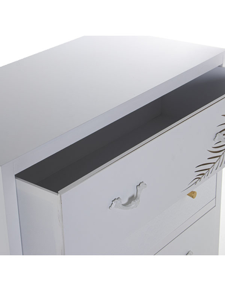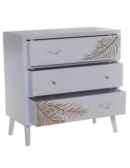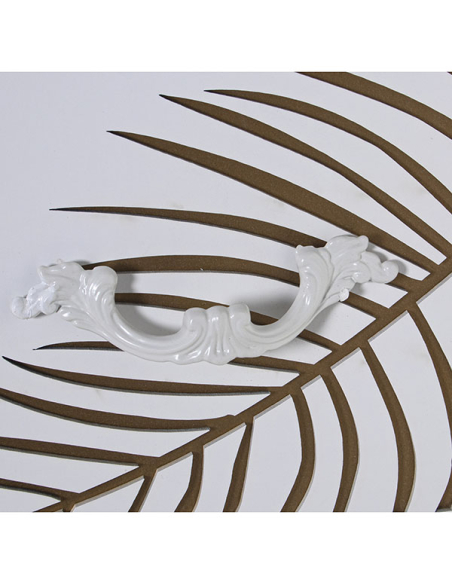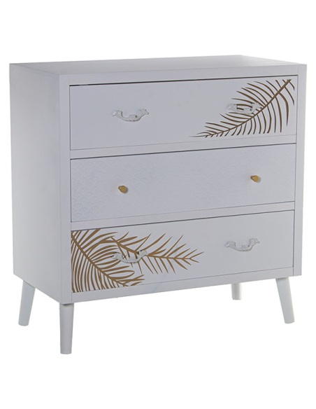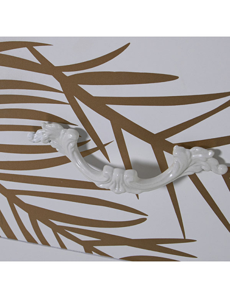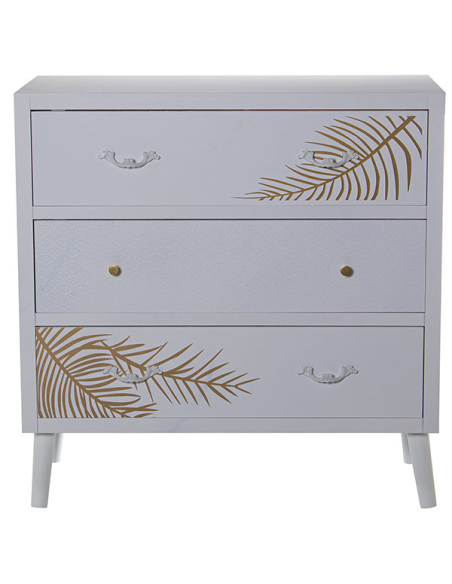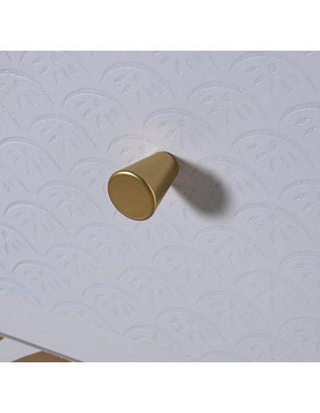 Cómoda madera tres cajones blanco relieve y hoja dorada
