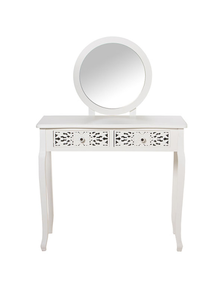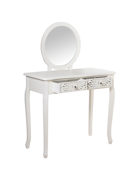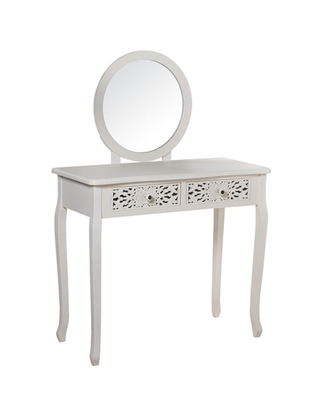 Mesa tocador madera con espejo y 2 cajones tallada