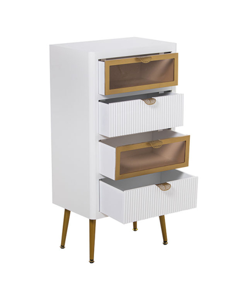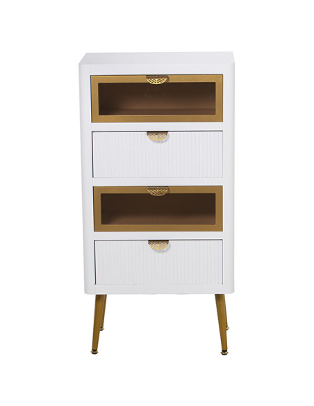 Sinfonier madera con 4 cajones blanco y dorado