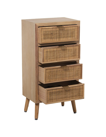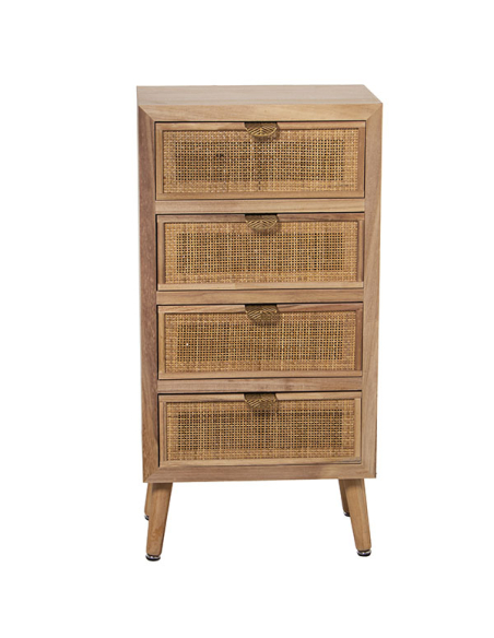 Sinfonier madera con 5 cajones ratán natural, pino y dm.