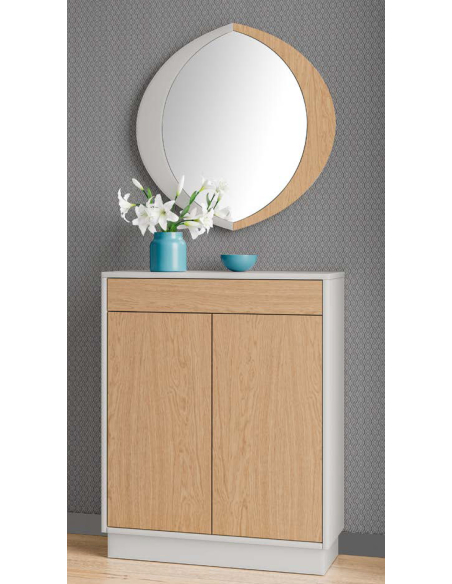Mueble Zapatero dos puertas, un cajón con zócalo modelo 4055 Kendra personalizable para que tengas la pieza que más se adapte a tu hogar y tus necesidades. Se trata de una colección de madera terminada con los mejores materiales, de alta calidad y entre los que podrás elegir varios acabados. Y si necesitas cualquier otro acabado o medidas puedes contactar con nosotras para crear la pieza de tus sueños.