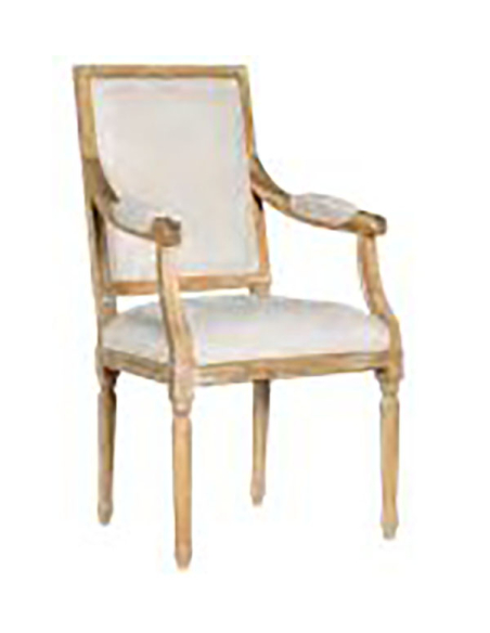 Conoce el Sillón Victoria en madera de roble color natural, tapizado en tela color beige, respaldo rectangular enmarcado en la misma madera, de estilo clásico. Un complemento ideal para la habitación o cualquier rincón de la casa al que queramos darle un toque de elegancia.