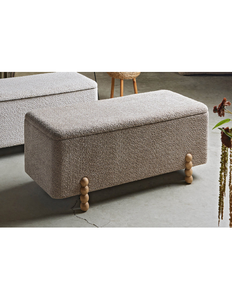 Descalzadora Jabarí patas torneadas rizo suave topo, se presenta como la pieza ideal para aportar elegancia y confort a tu hogar. Tapizada en un textil de bucle en un delicado color gris, su superficie suave invita a relajarse. Las patas de madera, elevadas y alineadas a los laterales del asiento, no solo ofrecen estabilidad, sino que también añaden un toque contemporáneo al diseño. Esta descalzadora es perfecta para colocar en salas, dormitorios o rincones de lectura, convirtiéndose en un elemento decorativo y funcional al mismo tiempo.