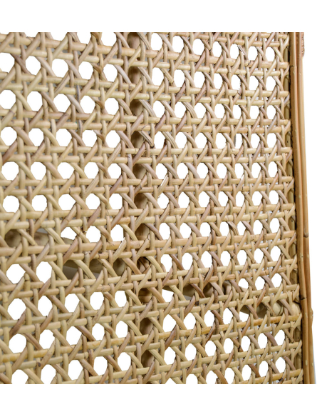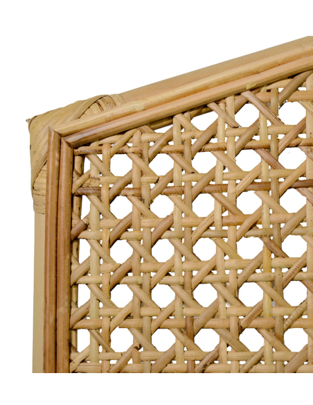 Cabecero ratán arco, ofrece un diseño elegante y natural, perfecto para un dormitorio de estilo boho. La terminación curva en la parte superior suaviza la estructura, mientras que la combinación de ratán y bambú añade textura y un toque orgánico. Su diseño hermoso y delicado se adapta perfectamente a ambientes relajantes y llenos de personalidad. Las patas elevadas permiten que el cabecero se apoye directamente sobre el suelo, eliminando la necesidad de colgarlo, y otorgándole una estabilidad moderna y práctica. Ideal para quienes buscan una pieza decorativa que aporte serenidad y estilo a su espacio.