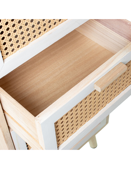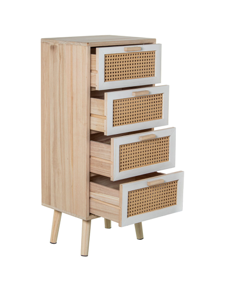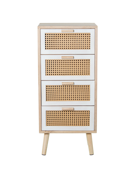 Sinfonier Elsa 5 cajones, es una solución de almacenamiento elegante y funcional para cualquier espacio del hogar. Con una estructura de madera natural y frentes de cajones con detalles de rejilla, aporta calidez y textura a dormitorios, salones o pasillos. Su diseño alto y compacto optimiza el espacio sin perder el estilo, con amplios cajones que permiten organizar ropa, documentos o accesorios con facilidad. Una pieza imprescindible para quienes buscan equilibrio entre diseño y funcionalidad.