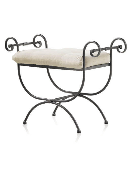 Banqueta descalzadora forja corta cojín, es la pieza perfecta para complementar tu dormitorio, vestidor o recibidor con un toque de elegancia atemporal. Fabricada en hierro forjado, destaca por su diseño ornamental con detalles curvos que aportan un aire sofisticado y artesanal. Su asiento acolchado con cojín garantiza comodidad y confort, siendo ideal para calzarse o simplemente para añadir un asiento adicional en cualquier estancia. Su tamaño compacto la hace fácil de ubicar sin ocupar demasiado espacio. Perfecta para hogares con decoración clásica, vintage o moderna.