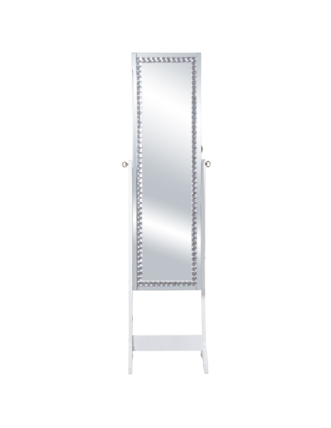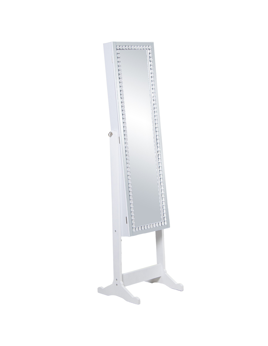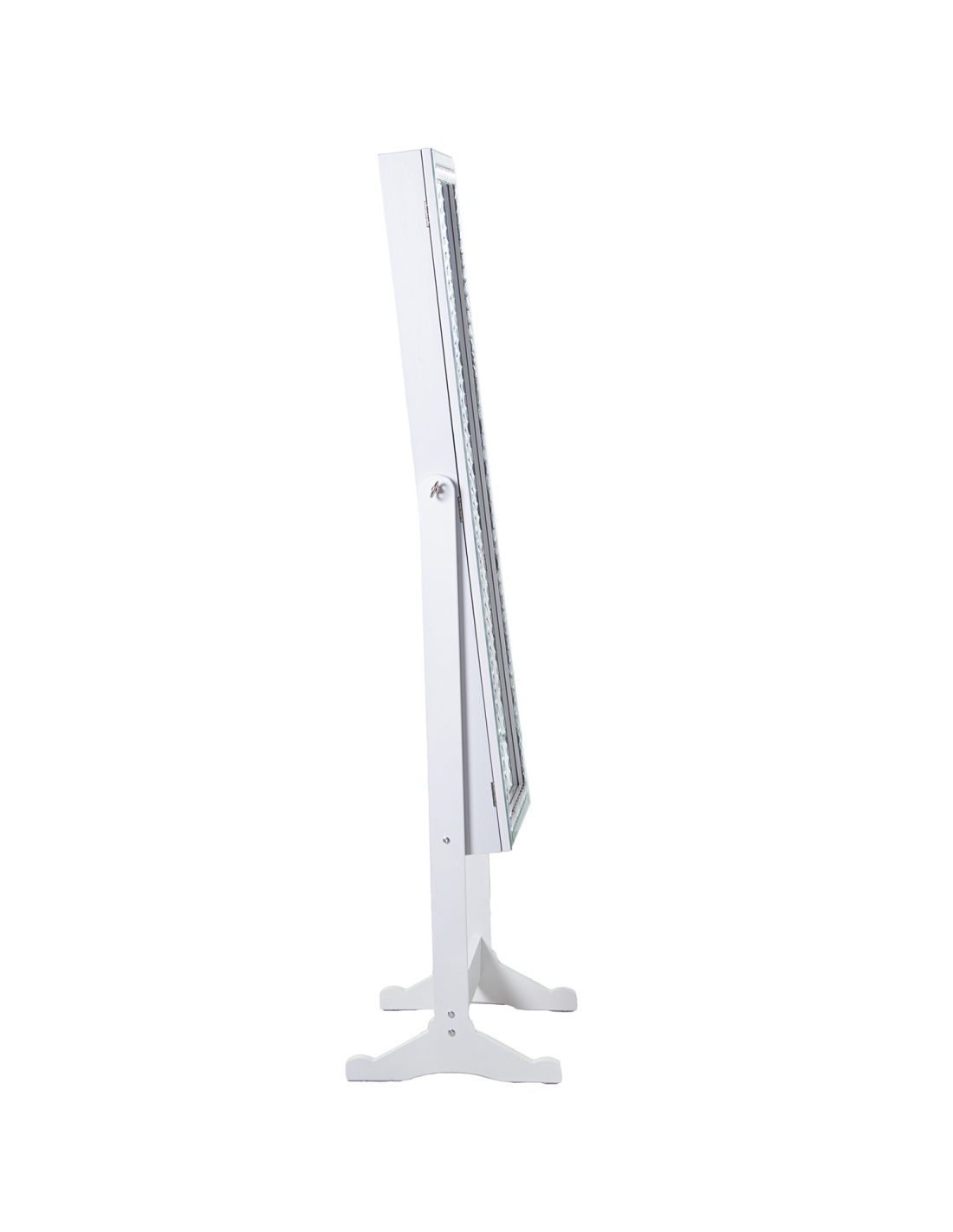 Sencillo y elegante Espejo joyero de pie blanco con marco espejo decorado que te hará ahorrar espacio y dará un toque elegante a tu dormitorio. Una manera diferente de tener todo organizado y a la vista, a la vez que tenemos una pieza especial en el dormitorio.